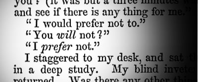 I was struck by how odd this story must have seemed to its readers (contemporary critics called the story “weird.”) And I wondered, how had this particular literary event found its way out of these pages, into the anthologies if not through a series of overlapping contexts, contexts altering over time, taking Bartleby away from The Life of a Dog and placing him next to The Tell-Tale Heart, with footnotes?