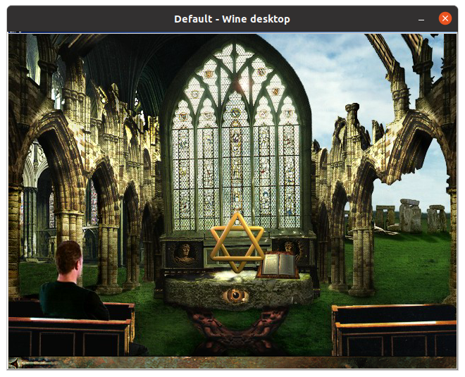 This two-CD set is exactly why. Let us walk through it. You open it (in an emulated Windows environment that can run 1990s software) and you are standing by a door that you can’t open but that is decorated with Tarot cards, next to a field of wheat. In the field (a…field of gold) a translucent apparition of a woman dances (I couldn’t get a screenshot). You click on her and are transported to a cloister where you learn about Amnesty International. After that you can enter a movie theater—not quite sure how I got there—