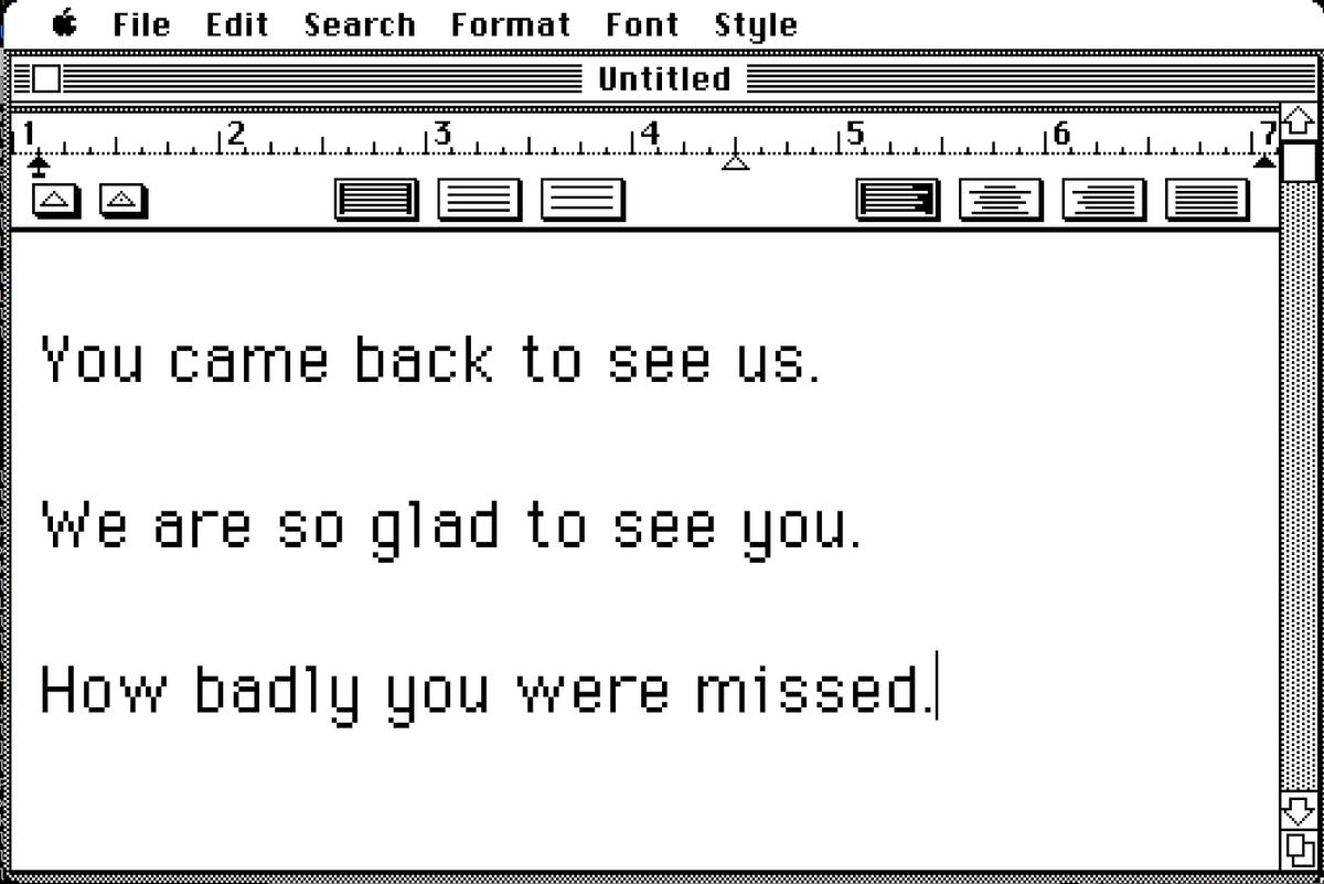 Over the last few days I’ve been crazy for emulation—that is, simulating old, busted computers on my sweet modern laptop. I’ve been booting up fake machines and tearing them down, one after the other, and not doing much besides. Machines I’ve only heard of, arcade games I never played, and programs I never used. Software about which I was always curious. And old favorites like MacWrite.