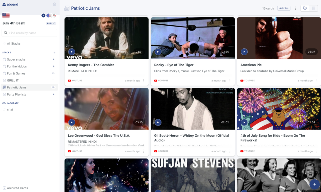 Special bonus board: July 4th! Including an extremely American collection of patriotic jams.