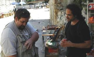 Photojournalist giving Bryan, from Indymedia.org.il, his card.