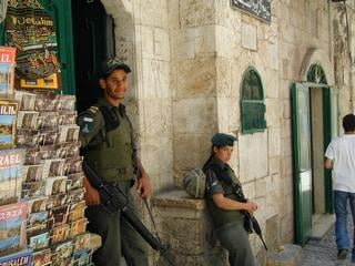 IDF Soldiers, guarding an East Jerusalem settlement organization. My friend had just asked them why they defend the “crazy settlers,” which is why the young woman is frowning.