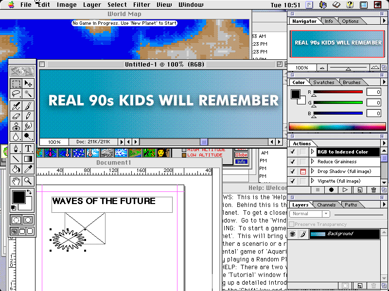 When I was making the overwhelming screenshot at the top of this post (gradients! drop shadows! Futura!) I made an image in Photoshop version 4 (1996, codename “Big Electric Cat”), transferred it to my desktop, and it opened just fine 20 years later.