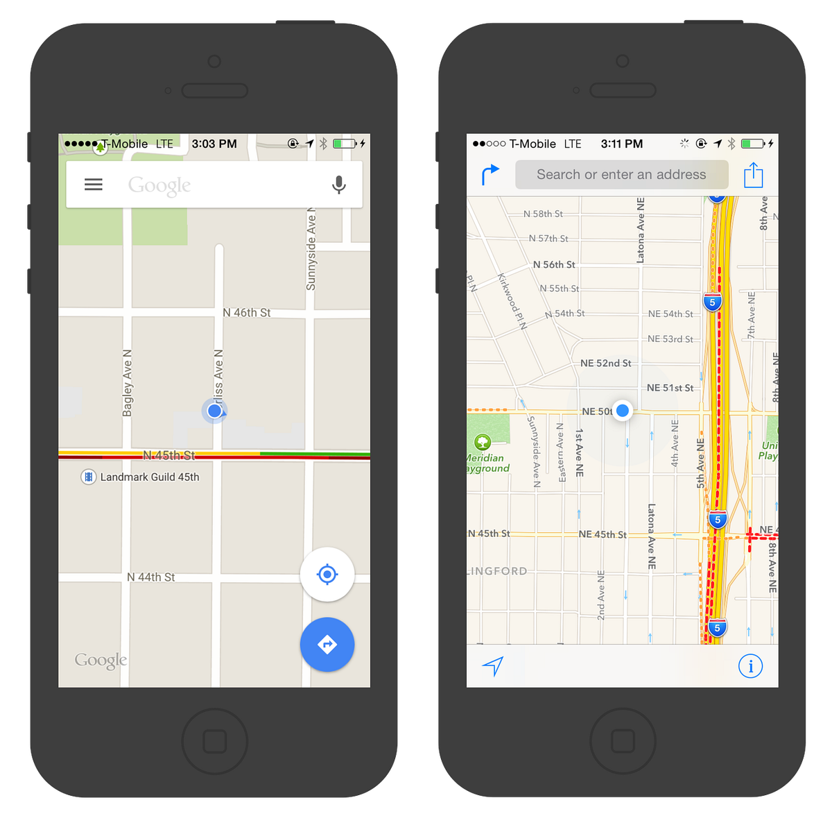 If you want to go further, look at this totally bananas 10,000-word article (also here on Medium) about the differences between the Google Maps app for iPhone and the Apple Maps app for iPhone, down to the placement of individual pixels.