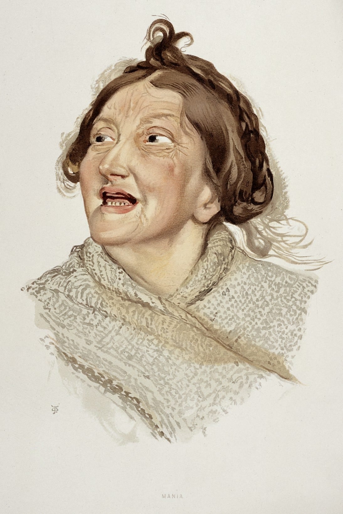 A woman diagnosed as suffering from hilarious mania. Color lithograph, 1892, after J. Williamson, 1890.