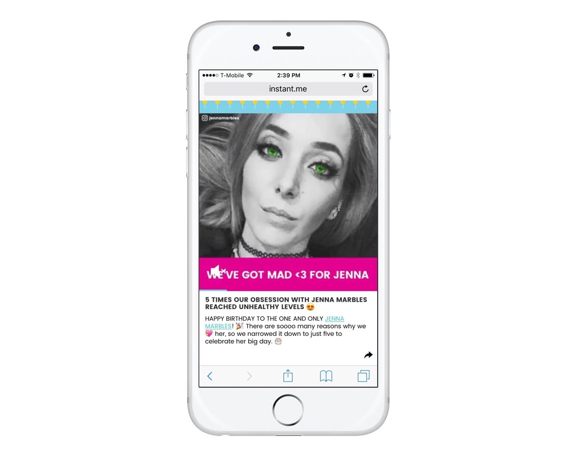Time Inc. is really good at creating news experiences that hundreds of millions of people recognize and respect. Think Time, People, Fortune, and Sports Illustrated. But Time also knows that things change and that the new stars aren’t just on movie screens, but on phone screens, too. That’s why they asked us to partner with them to create Instant.me.