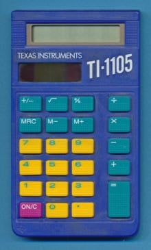 Now, this is a homely old-fashioned solar calculator. My pocket phone has a billion times the computing power. Nonetheless, my son brought one of these home from kindergarten and I fell in love with it right away. I took it away from him and held it and multiplied numerals for a while. It looks so American in its colors, it was it was like holding a little flag. Finally he insisted I give it back.