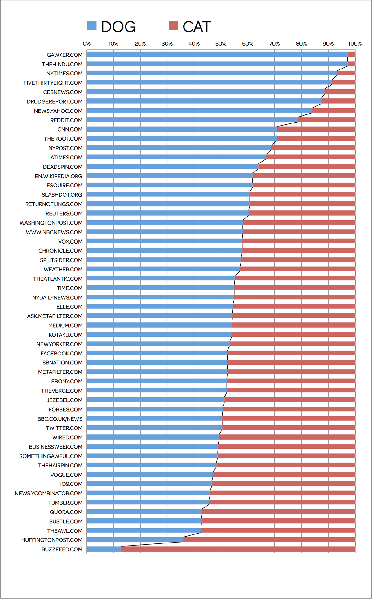 Who would have assumed that the Washington Post and Vox.com would have so much in common? (Everyone.) Or that BuzzFeed and The Huffington Post, at least as Bing sees it, would be so likely to prefer cats to dogs? Or that The Awl enjoys discussing both cats and penises? (Everyone.) It’s good to know things about your media when you consume so much of it, so I’m glad we did this together.