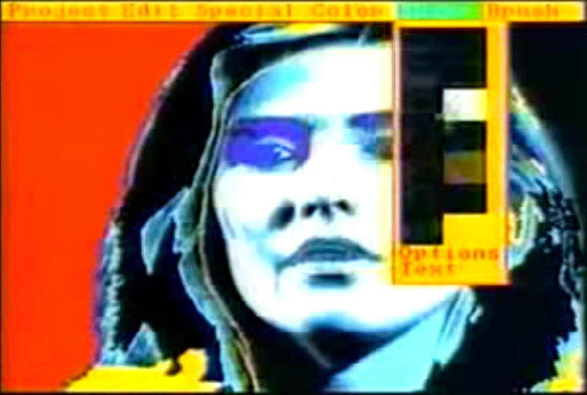 Debbie Harry’s face being live-manipulated by Andy Warhol in 1985 at the Amiga Launch event. .